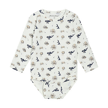Blød og behagelig bodystocking fra Minymo med fint havdyr-print. Designet i lækker bomuldskvalitet, der føles rar mod huden og giver god bevægelsesfrihed til de mindste.
